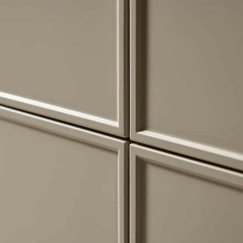 Das Interliving Fronten Programm 3625 steht für zeitgemäßes Design mit hochwertiger, softmatter Echtlackoberfläche. Der mehrschichtige Lackaufbau sorgt für eine gleichmäßig ruhige Optik und angenehme Haptik, während rundum lackierte Kanten das klare, elegante Erscheinungsbild unterstreichen.