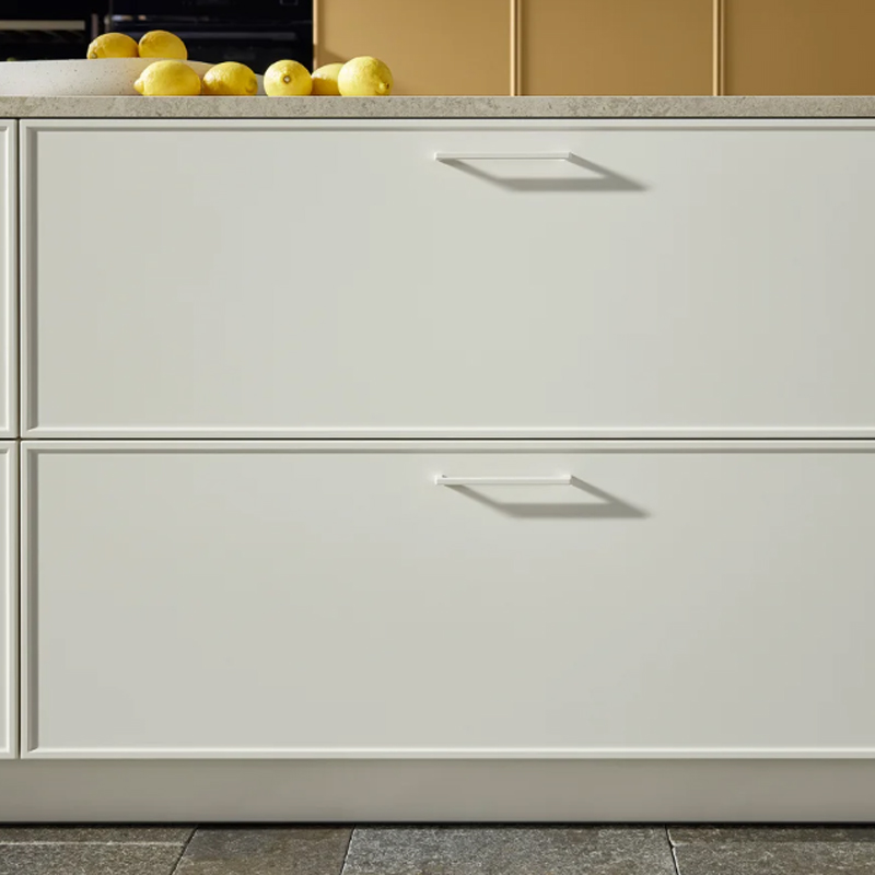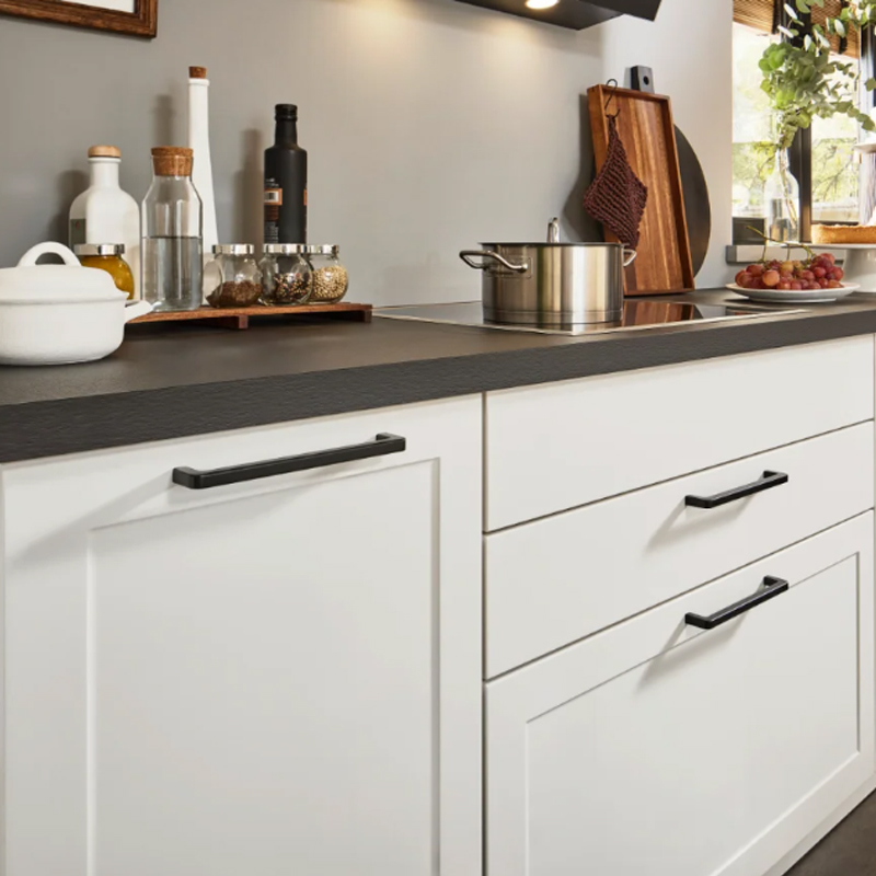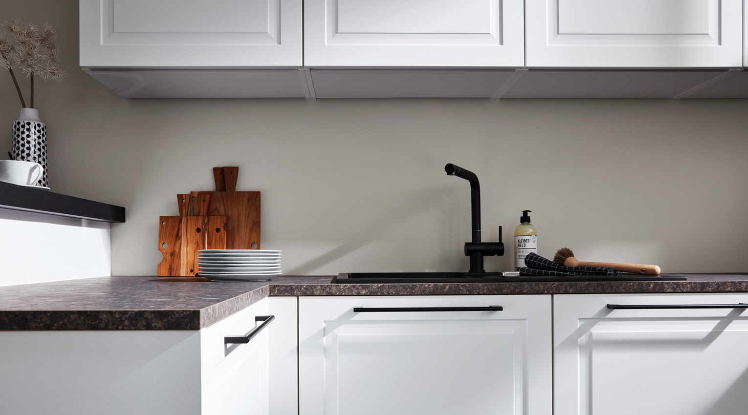 - Farbgleiche Mattlackgriffe für ein harmonisches Gesamtbild