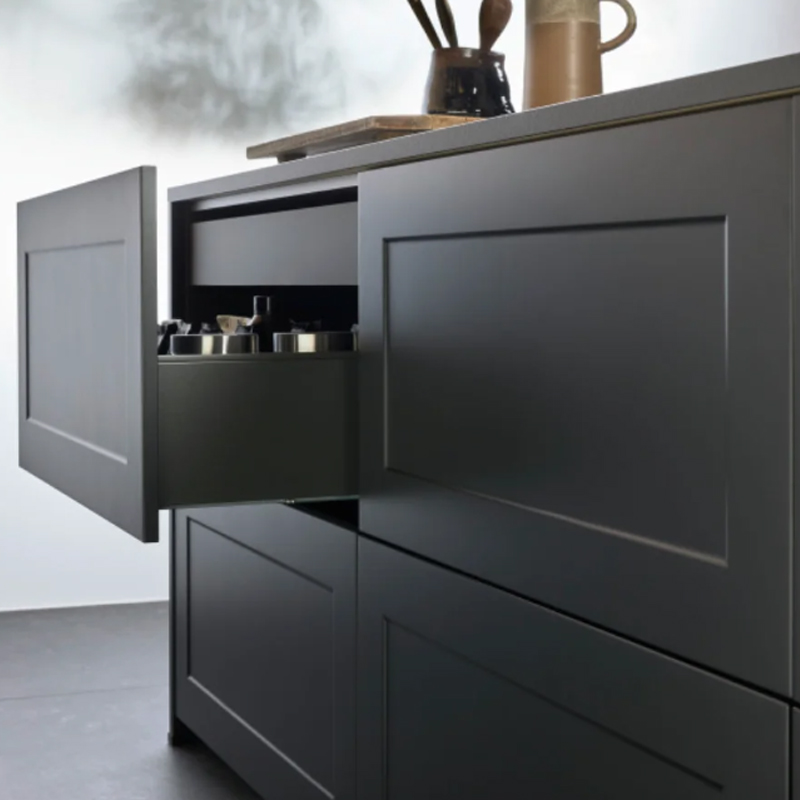 Das Interliving Fronten Programm 3600 verbindet klassische Rahmenoptik mit einer edlen, softmatten Echtlackoberfläche und interpretiert den Landhausstil zeitgemäß neu. Die hochwertige Lackierung sorgt für eine angenehme Haptik, eine ruhige Ausstrahlung und eine langlebige Qualität, ideal für stilvolle Küchen- und Wohnkonzepte.