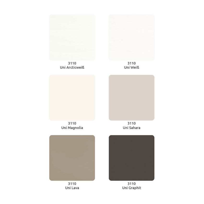 - Moderne Unifarben wie Arcticweiß oder Quarzgrau
