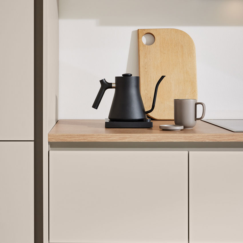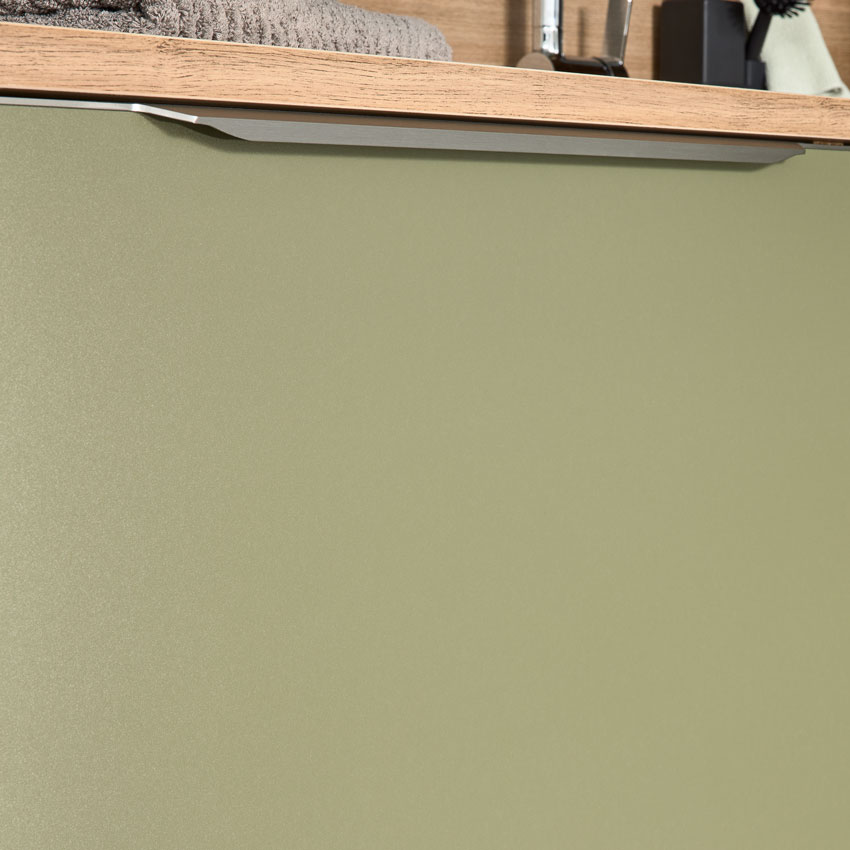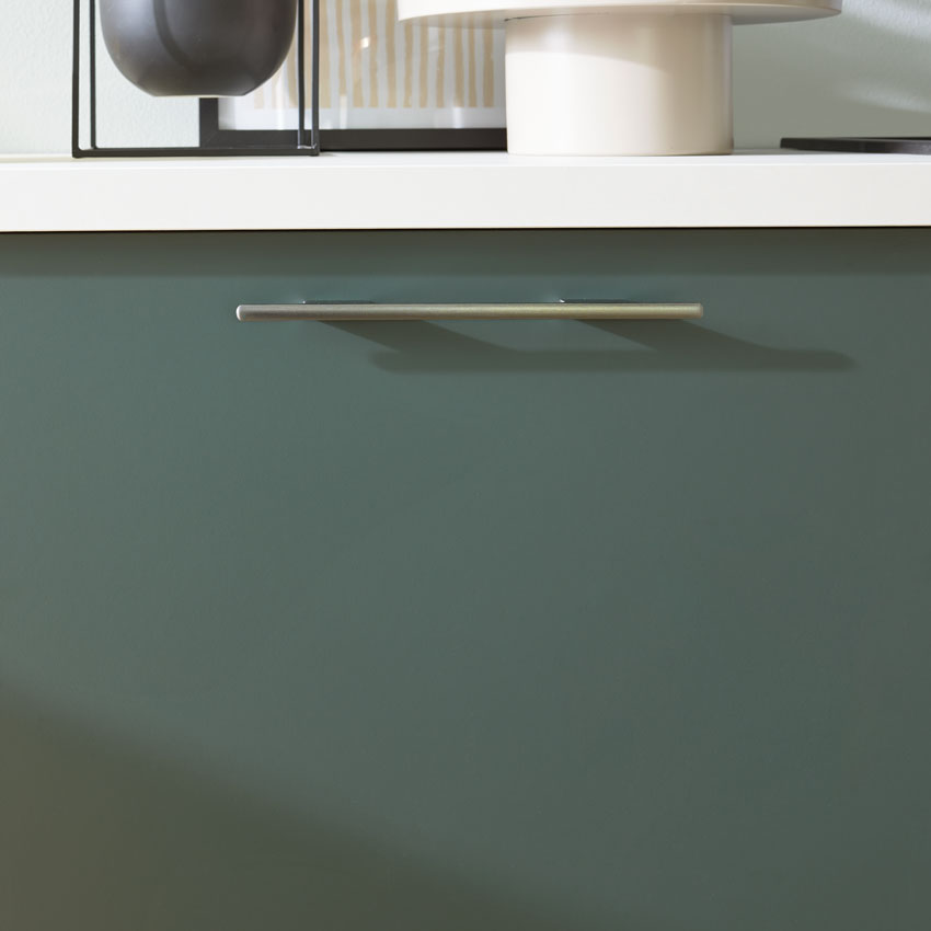 - Farbgleiche Mattlackgriffe für ein harmonisches Gesamtbild