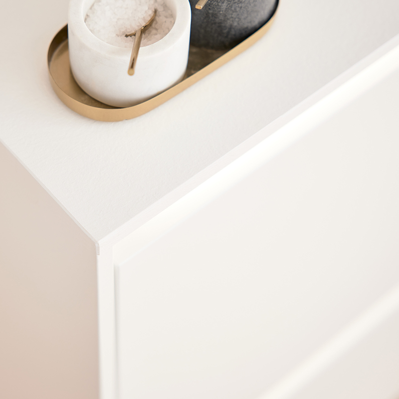 - Integrierte Griffspur für durchgängige, grifflose Gestaltung