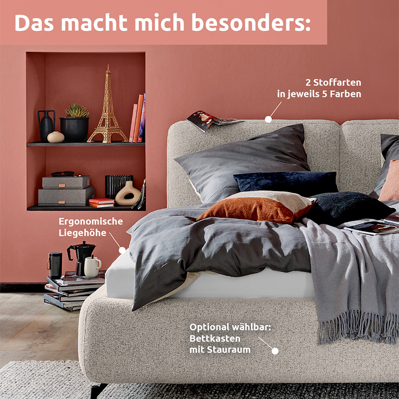 Entdecke die Vielfalt und finde dein maßgeschneidertes Polster- oder Boxspringbett, das deinen Wohnträumen entspricht.