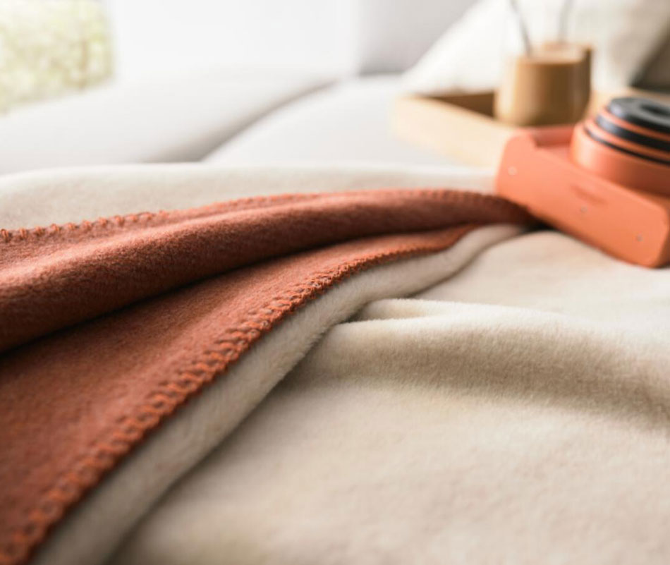 Weiche Wohndecke zum Wenden in Rostorange meliert mit heller Rückseite