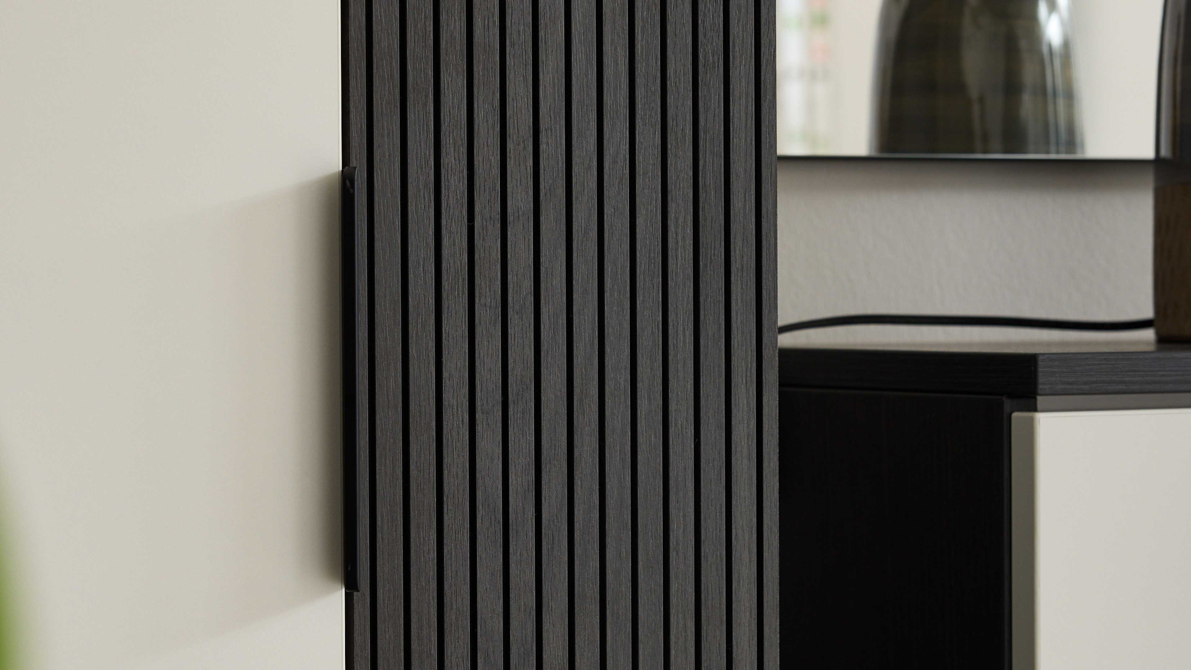 Zweifarbiger Garderobenschrank in Weiß und Schwarz mit klarer Linienführung und modernem Griffdesign