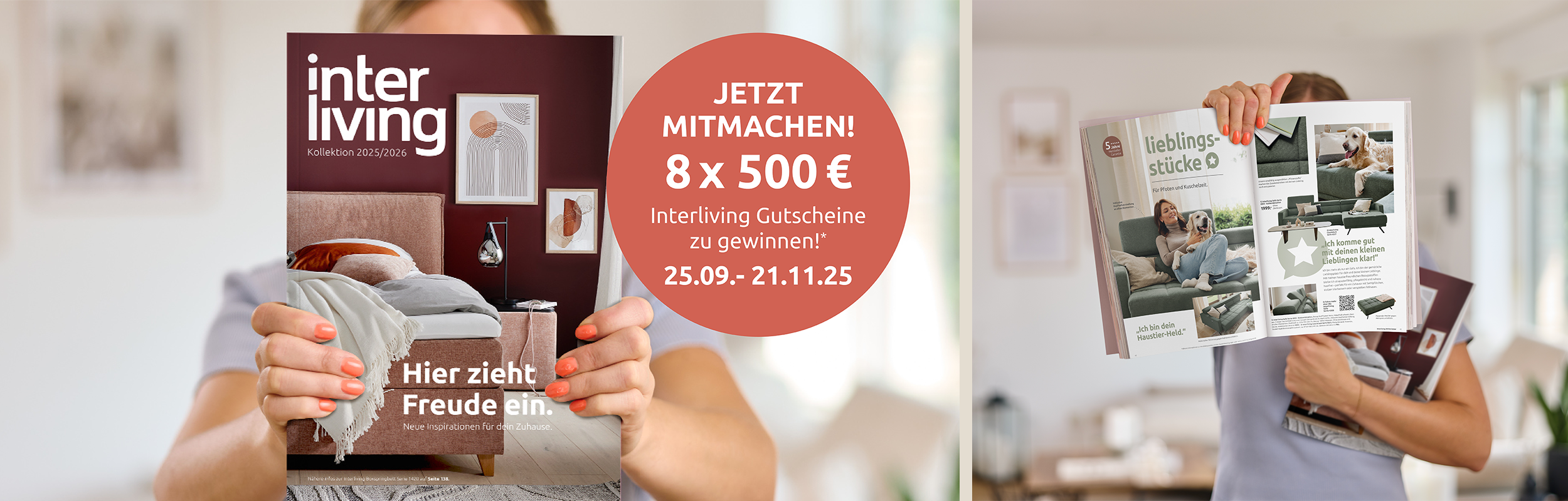 nutze jetzt die Chance und mach mit bei unserem Wohnbuch Gewinnspiel!Gewinne einen von 8 Interliving Gutscheinen im Wert von je 500€.