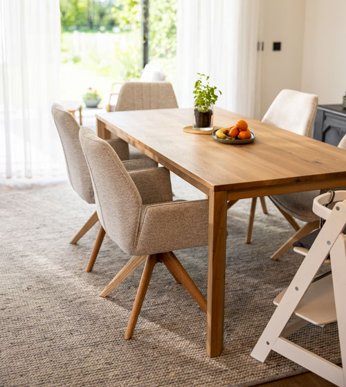 Was es dafür braucht? Einen ausziehbaren Esstisch für Familien, der das Leben mit Kindern mitmacht. Einen, der gut aussieht, aber auch robust und pflegeleicht ist. Genau deshalb fiel die Wahl der Evers’ auf die Interliving Esszimmer Serie 5102 – und sie sind begeistert.
