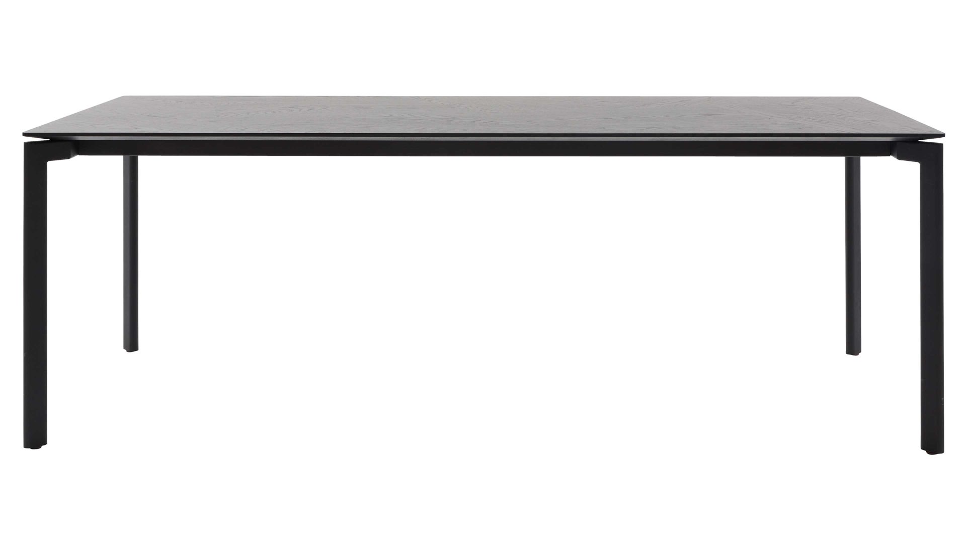 Hergestellt aus mattschwarzem Eichenholzfurnier, verströmt er extravagantes Flair. Füße aus mattschwarz pulverbeschichtetem Metall runden den Look harmonisch ab. Auch qualitativ weiß der Tisch zu überzeugen. Die Materialien sind robust, widerstandsfähig und langlebig.