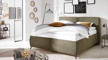 Das Polsterbett Variante 4 aus der Interliving Bettsystem Serie 1414 überzeugt mit einem edlen olivgrünen Stoffbezug, der dem Schlafzimmer eine warme, stilvolle Ausstrahlung verleiht. Die schwarzen Metallfüße S 339 setzen einen modernen Kontrast und sorgen für eine schwebende Optik – ideal für den Einsatz eines Staubsaugerroboters. Die Liegefläche beträgt ca. 180 x 200 cm (BxL).