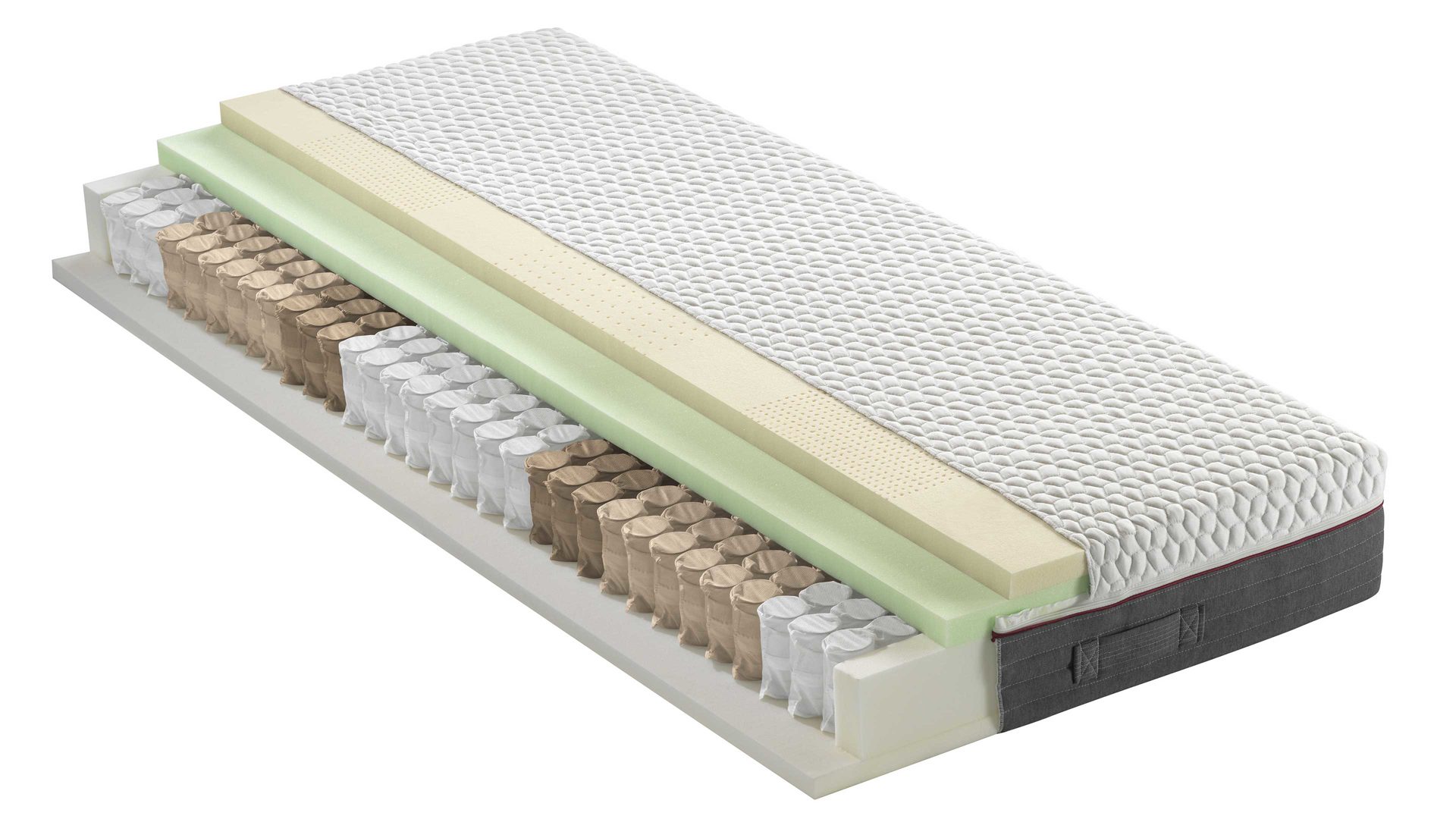 Sie bietet einen hochwertigen Mehrzonen-Taschenfederkern mit einer Kernhöhe von ca. 22 cm. Durch den exzellenten Kernaufbau mit einer ca. 12 cm hohen Komfortbasis inklusive sehr anpassungsfähiger Einzelfedern (ca. 500 Federn auf einer Fläche von ca. 100 x 200 cm) sowie einer ergonomisch körperorientierten Zonierung mit entlastender Schulter- und Beckenkomfortzone gewährleistet die Matratze eine progressive Körperunterstützung und hohe Dauerbelastbarkeit. Die starke Luftdurchlässigkeit reduziert Wärmestau und verbessert so spürbar das Schlafklima.
