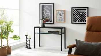 Mit ca. 100 × 75 × 38 cm (B/LxHxT) ist dieser rechteckige Konsoltisch die ideale Ergänzung für unterschiedlichste Wohnbereiche. Die schlanke Form verleiht dem Möbel eine elegante Leichtigkeit, während die untere Glasablage Platz für Magazine, Bücher oder dekorative Accessoires bietet – perfekt, um dein Zuhause stilvoll und aufgeräumt zu gestalten.