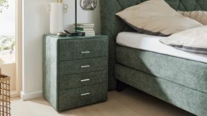 Nachtkommode Interliving Boxspringbett Serie 1420 – stilvolle Ordnung in moosgrünem Design. Einzelkommode trifft Design und Funktion